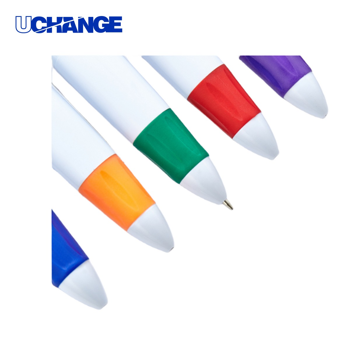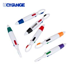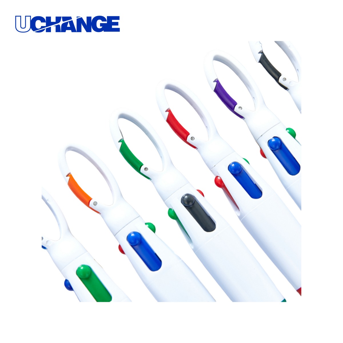 This plastic ballpoint pen is non-toxic and safe, featuring four ink colorsred, green, black, and blue. A simple click on the color tab allows seamless switching, perfect for highlighting notes or drawing. The top buckle design enables easy carrying by clipping onto wallets, handbags, or keychains.Ideal as a gift from parents to children, its pure white body offers space for logo customizationmaking it a great giveaway for corporate conferences to promote brands. Widely used in exhibitions, schools, hospitals, parties, and more, this pen combines functionality with promotional value.
